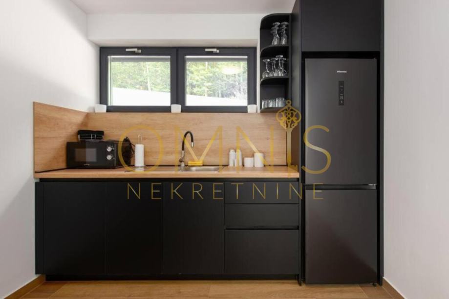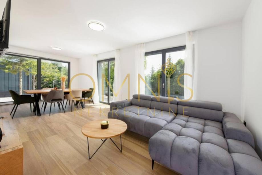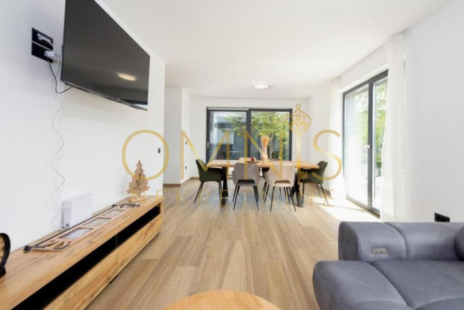 Prodajemo prekrasnu novosagrađenu kuću na mirnoj i tihoj lokaciji. Sastoji se od dvije spavaće sobe, dnevnog boravka, kuhinje i blagavaonice, hodnika, dvije kupaonice s WC-ima, ostave, terase te saune. Grijanje i hlađenje je na dizalicu topline. Kuća posjeduje wellnes( sauna i jacuzzi). Na prostranoj okućnici ima dovoljno zelene površine te parkirnih mjesta. Kuća je kompletno uređena i namještena te se kao takva i prodaje. Odlična nekretnina koja je također u uhodanom najmu te budući kupac ujedno i preuzima uhodani posao po želji. Blizina bitnih sadržaja te ugodna i mirna okolina ovu nekretninu čine izuzetno atraktivnom kao vikendica ili kuću za odmor.