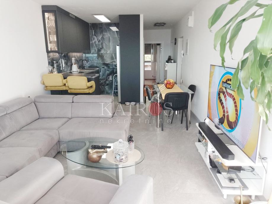 G. VEŽICA, prodajemo stan površine 62 m2, dvosoban s dnevnim boravkom, na 3. katu stambene zgrade. Stan je kompletno renoviran, lijepo i moderno uređen. Iz dnevnog boravka je izlaz na lođu na jugu s koje se pruža prekrasan panoramski pogled na cijeli Riječki zaljev.