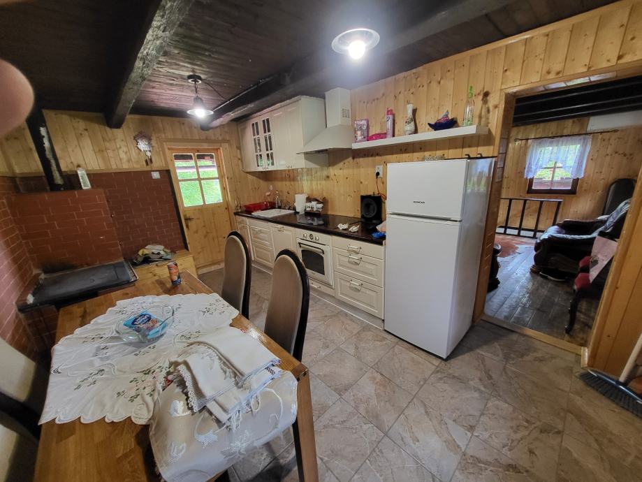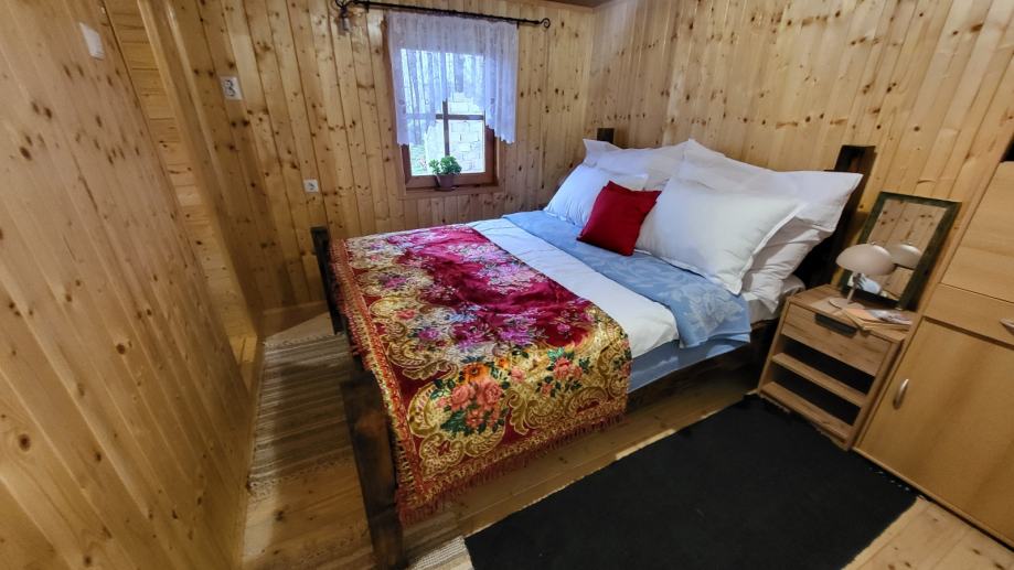 Kuća se nalazi u netaknutoj prirodi u blizini Vojnića u šumi. Ova prekrasna drvena hrastova kuća s površinom od 100 kvadratnih metara stambenog prostora, očarava svojim rustikalnim šarmom i nudi udobnost modernog života. Kuća je u izvornom seoskom obliku rustikalna.