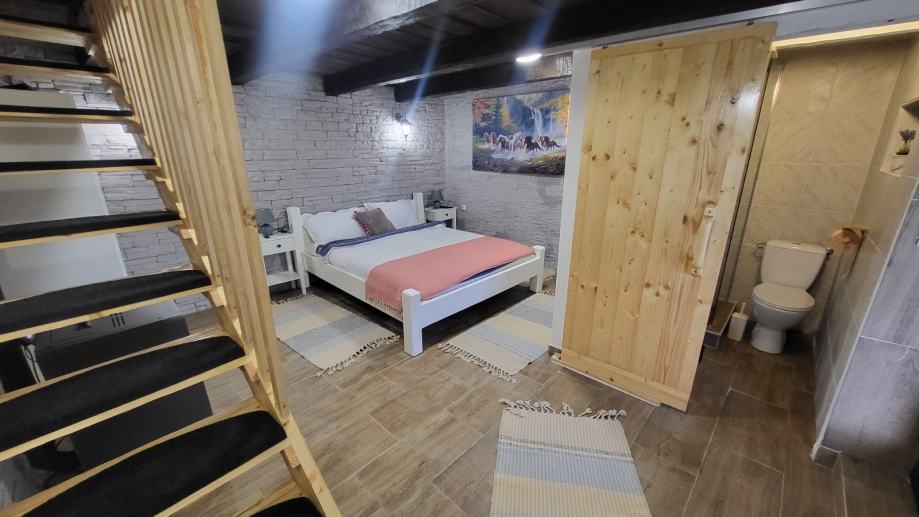 Dvije spavaće sobe sa bračnim krevetima sa kupaonicom i wc.
