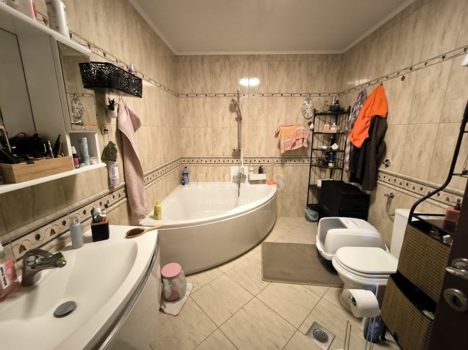 Stanu pripada i natkrivena terasa od 5,18 m2, ograđeni vrt od 38 m2 te garaža od 31,71 m2 u koju stanu 2 auta te dodatna mogućnost parkiranja ispred garaže.