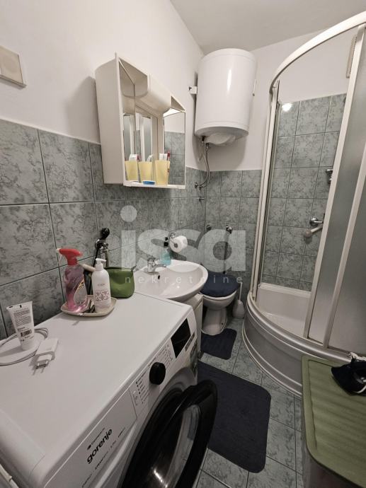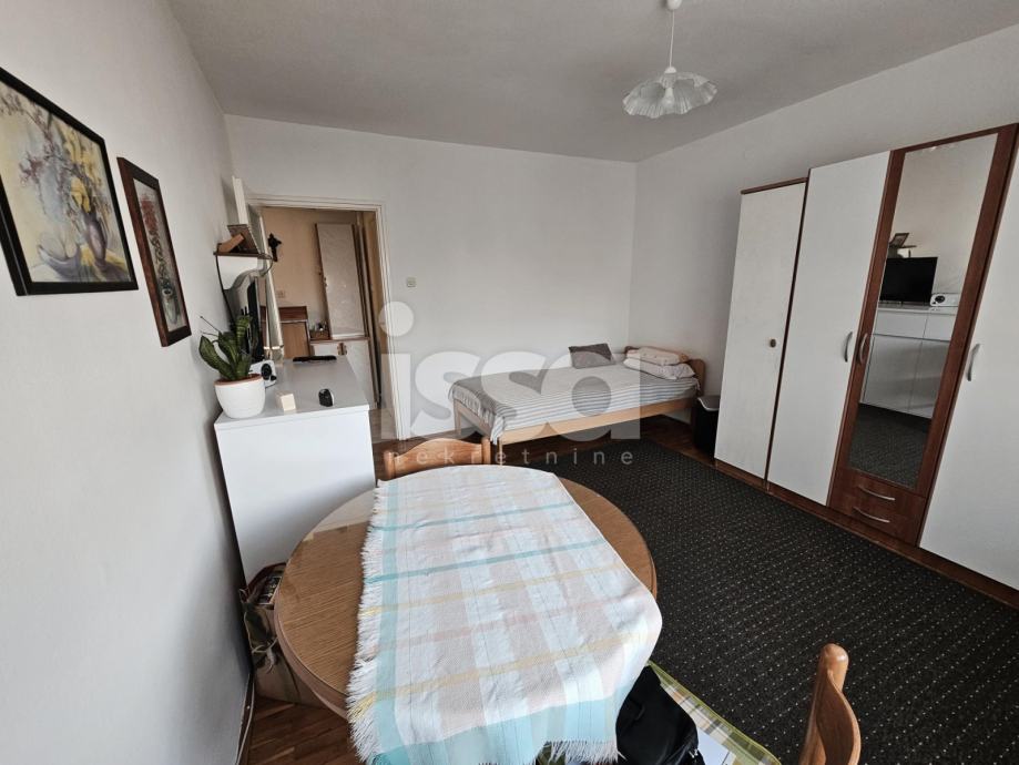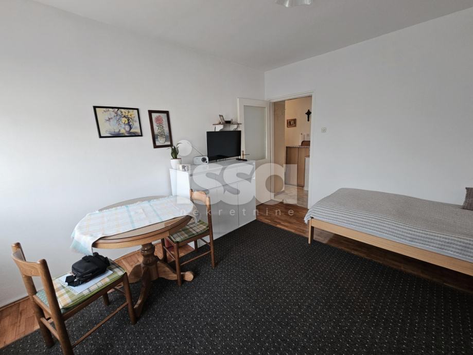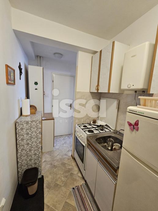 Stan se sastoji od kuhinje, dnevne sobe s blagovaonicom, te kupaonice s tuš kabinom. Stan je adaptiran prije 10 godina– struja, voda, keramika, PVC stolarija, brušeni parketi. Stan je održavan te ne zahtjeva dodatna ulaganja. Prodaje se u djelomično namješten.