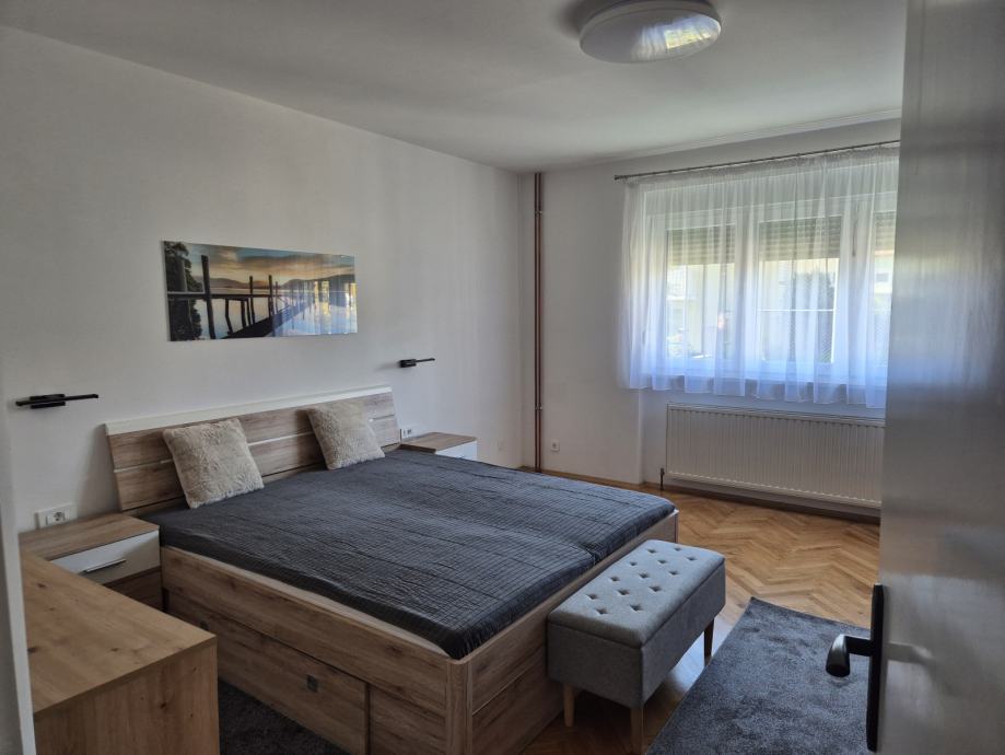 - Velika spavaća soba sa širokim bračnim krevetom, komodom i garderobnim ormarom. Pregršt mjesta za krevetić za bebu (kinderbet) ili stol za šminkanje.