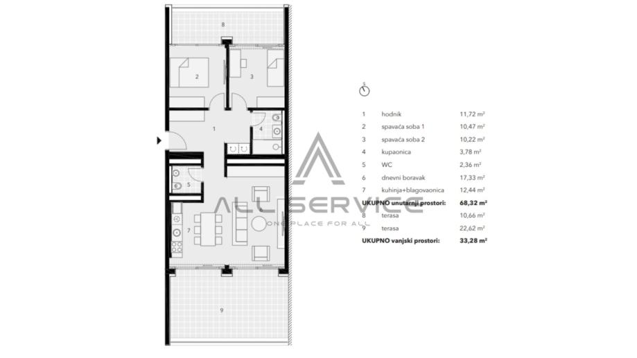 Gajnice, moderan stan na 2.katu novogradnje 2S+DB - 76.64m2 (prodaja)