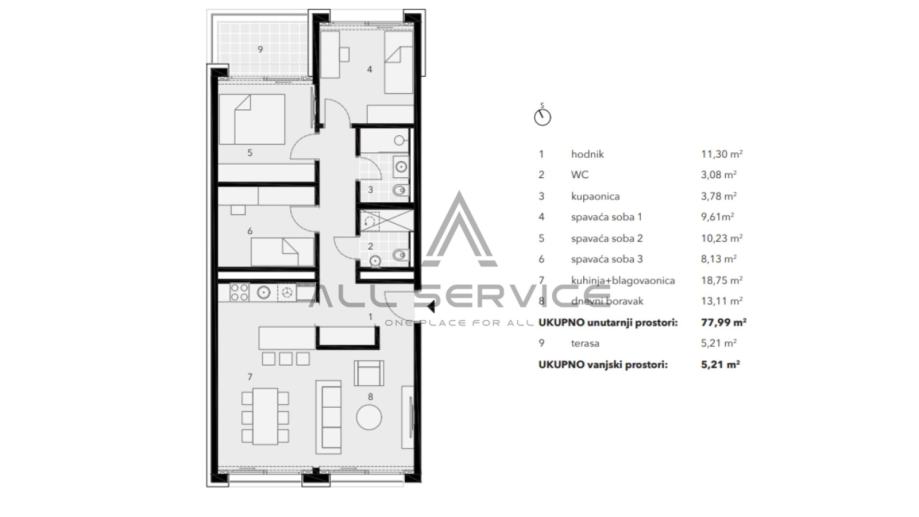 Gajnice, moderan stan na drugome katu novogradnje 3S+DB - 79,29m2 (A - S11)
