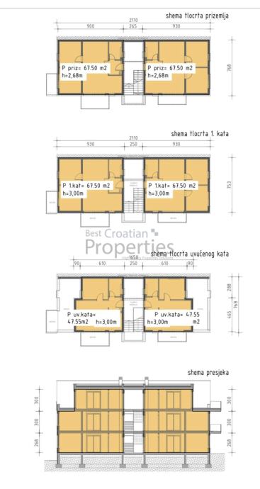 Prodaje se predivan 2.-soban penthaus u novogradnji sa sveukupno tri stana u zgradi, smještenoj u mirnoj ulici na Gajnicama.