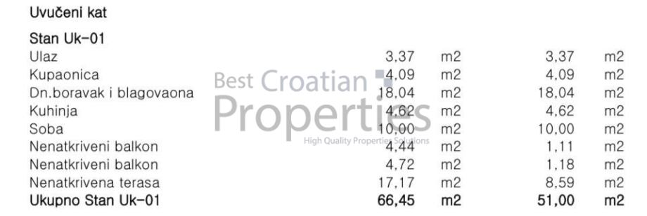 Ukupna kvadratura samoga stana bez koeficijenata ispada 66.45m2.