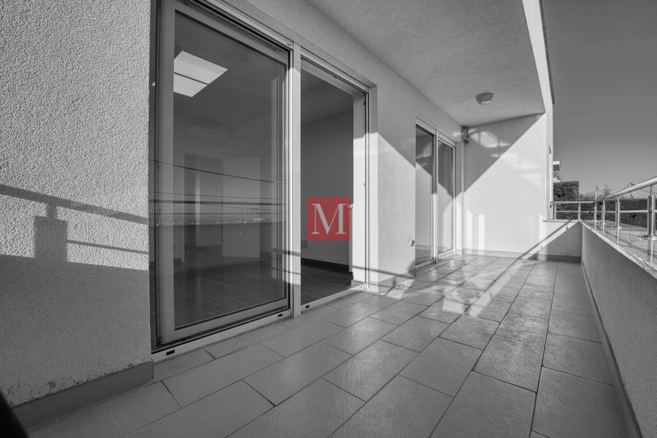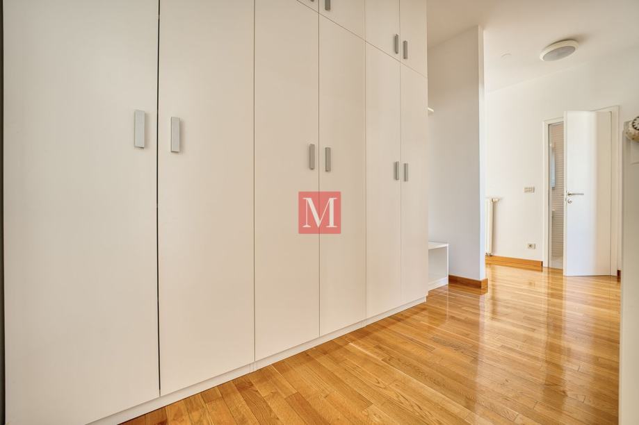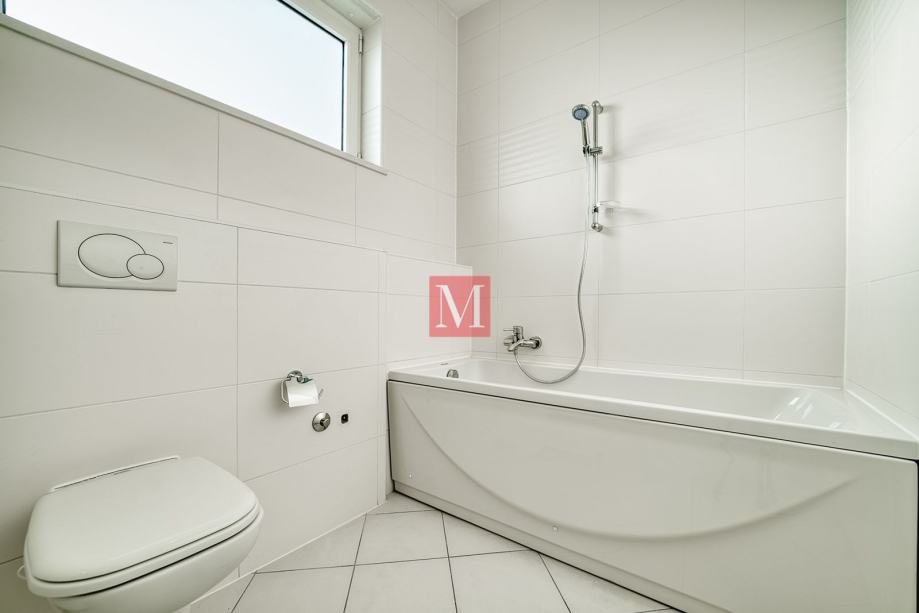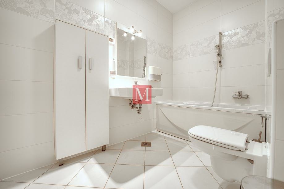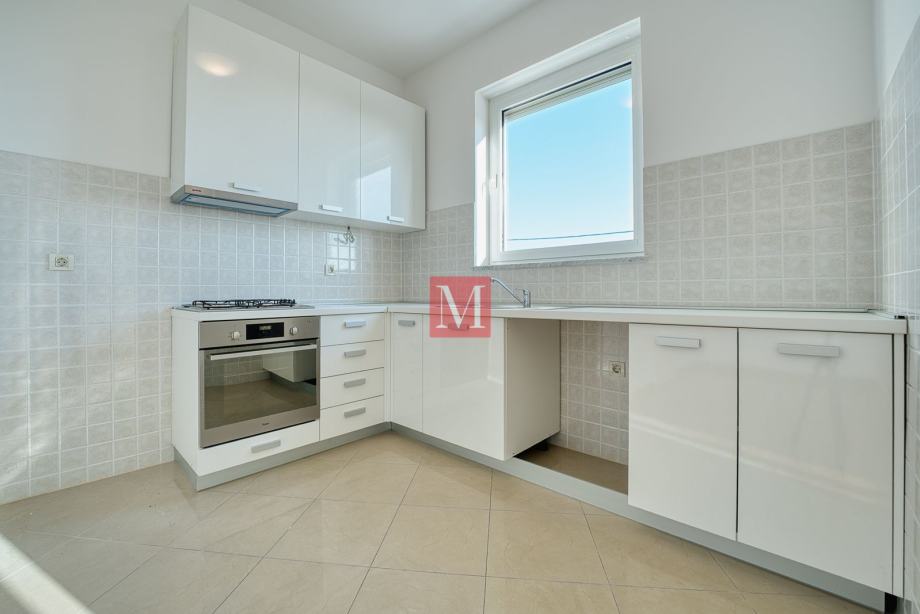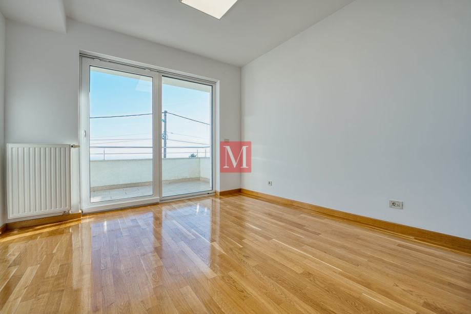 Penthouse: ulazni hodnik, velika prostorija, kuhinja, dvije kupaonice s toaletom, tri sobe, garderoba, galerija, ostava, loggia, terasa i balkon. Pripada mu i vanjsko parkirališno mjesto(12.50m2) i garaža(15m2).
