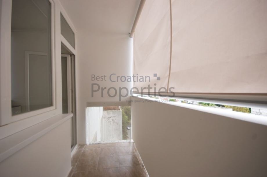 Stan se sastoji od ulaznog prostora s manjom kuhinjom, sobe, velike lođe i kupaonice.