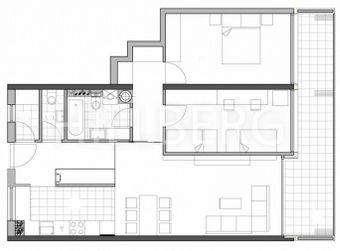 Sastoji se od dnevnog boravka s kuhinjom i blagovaonicom, 2 spavaće sobe, lođe, kupaonice s kadom, wc-a i ostave.