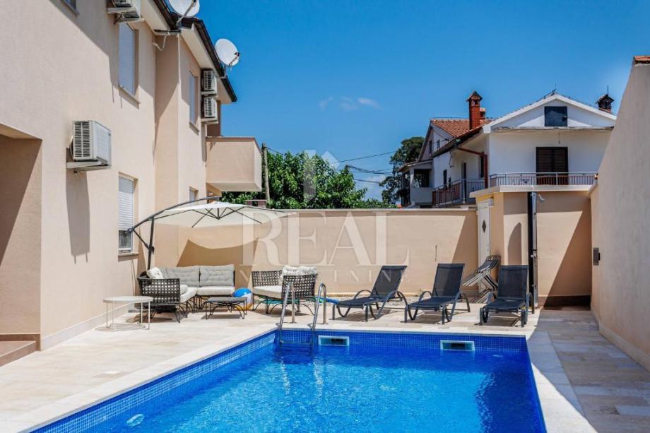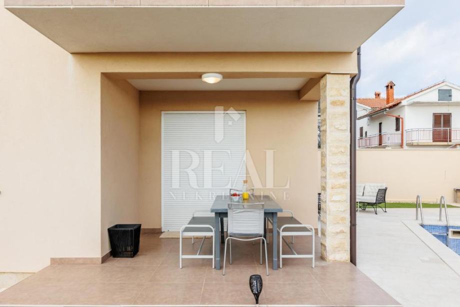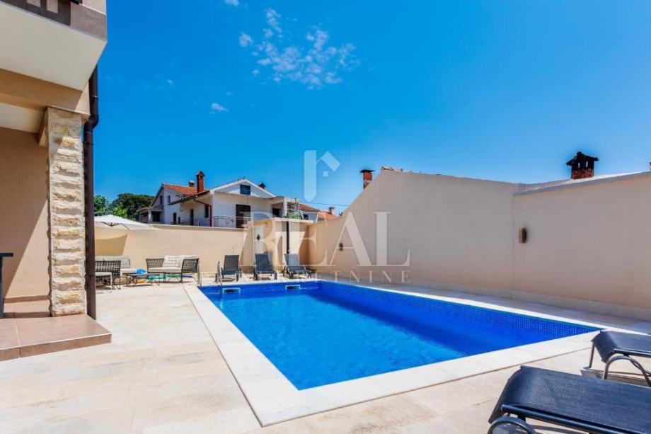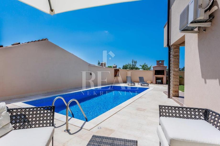Galižana, novija kuća na mirnoj lokaciji okruženoj zelenilom. Stambeni prostor ima 180m2 a nalazi se na zemljištu od 301m2.Ima dvije etaže a prizemlje pokriva kuhinja sa dnevnim dijelom i blagovaonicom, kupaonica ostava te terasa ,dok su na katu tri spavaće sobe sa vlastitim kupaonicama i dvije terase sa pogledom na more. Grijanje je putem klima uređaja i podno na struju. U dvorištu su smještena parkirna mjesta i bazen velićine 27m2.Kuća je u funkciji ljetnog najma i izuzetno je dobra prilika kako za investiciju tako i za obiteljski život.
