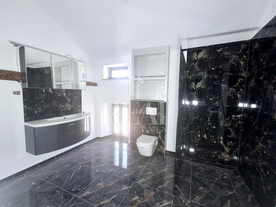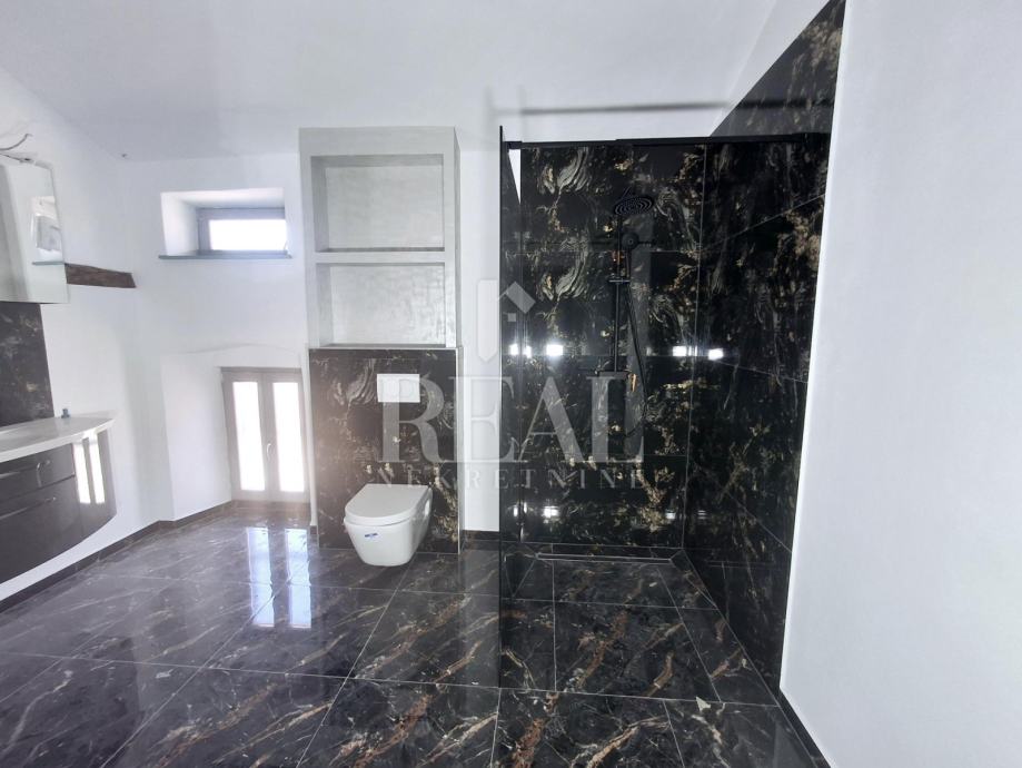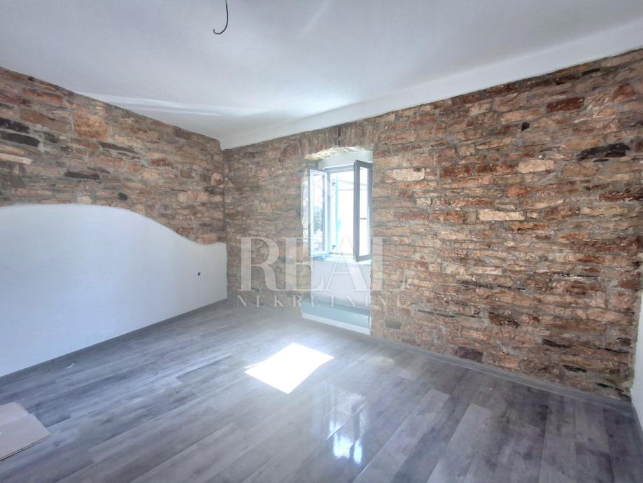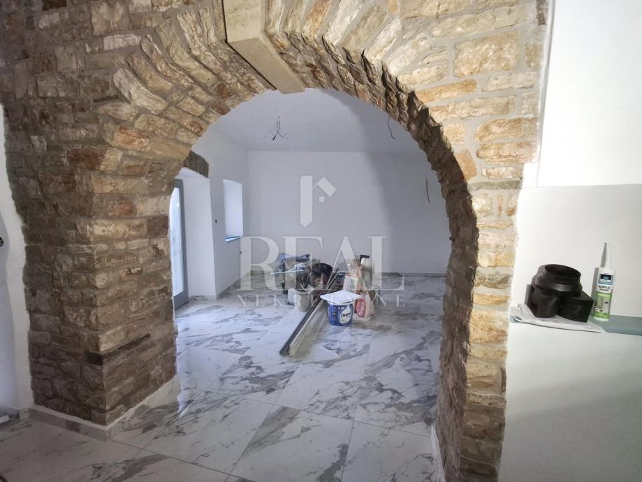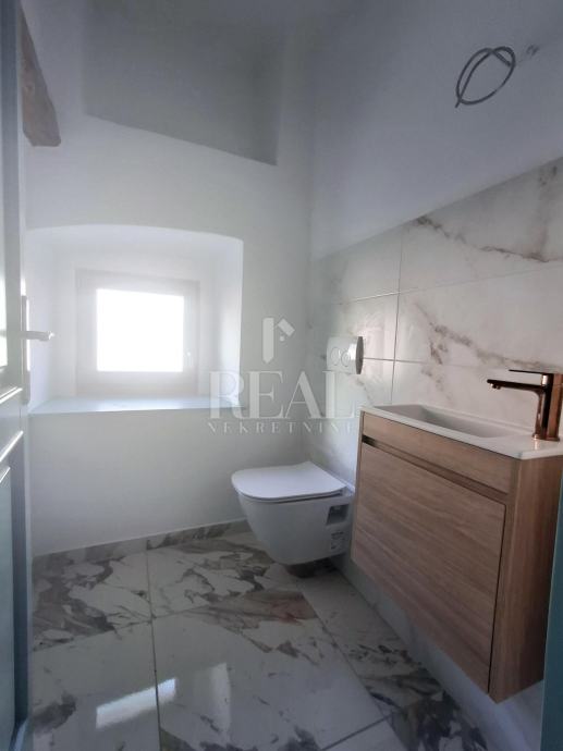 Vanjska stolarija je kompletno promjenjena i postavljena je nova drvena, postavljene su nove instalacije i međukatna konstrukcija. Kuća je u završnoj fazi uređenja fale još unutarnje stepenice i par detalja te vanjska fasada i pločice na vanjskoj terasi koja je veličine oko 15m2.Parking je u neposrednoj blizini na javnoj površini.Radi se o objektu koji je smješten zadnji u nizu.Idealna nekretnina za vlastito uživanje ili kao investicija u turističke svrhe.