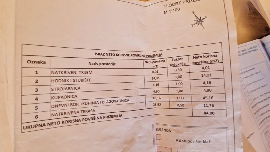 U prizemlju se nalazi hodnik, strojarnica, kupaonica, dnevni boravak i kuhinja s izlazom na natkrivenu terasu - sve ukupno 84m2.