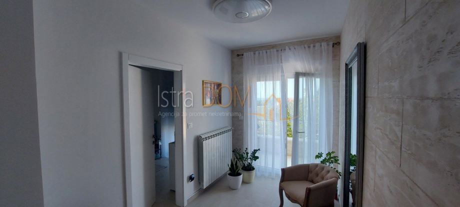 Unutarnje stepenice vode na kat, gdje se nalazi predsoblje, još četiri spavaće sobe i dvije kupaonice. Ovdje se također nalazi izlaz na veliku terasu s koje se pruža prekrasan pogled na more i maslinik, idealno mjesto za uživanje u jutarnjoj kavi ili večernjim zalascima sunca.