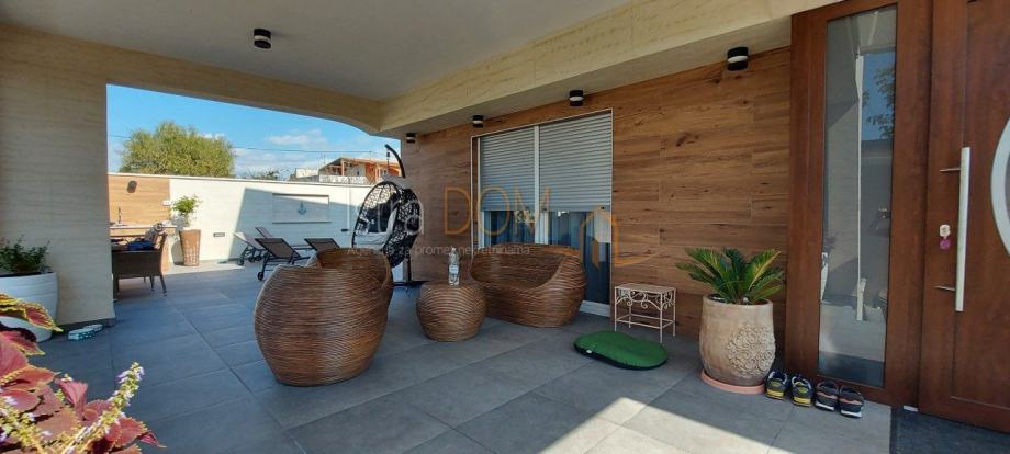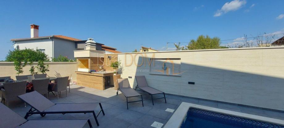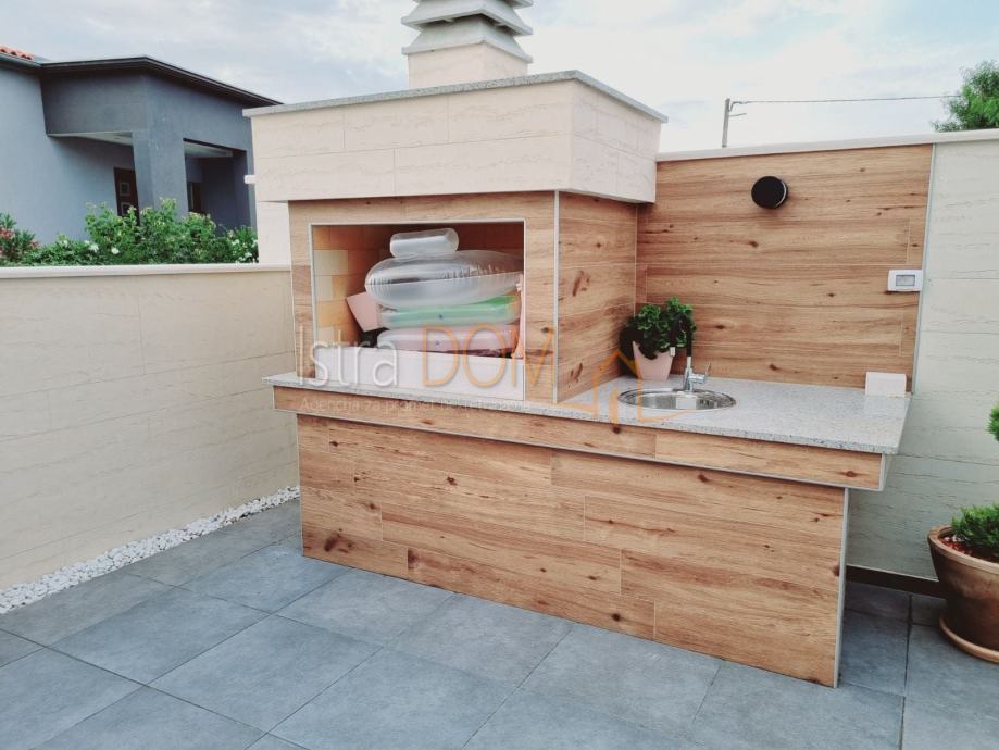 Uređena okućnica sadrži grijani bazen, savršeni kutak za osvježenje tijekom vrućih ljetnih dana, kao i roštilj i malu natkrivenu konobu, idealnu za druženja s obitelji i prijateljima. Vila je građena od izuzetno kvalitetnih materijala i opremljena je novim namještajem, što osigurava udobnost i luksuz.