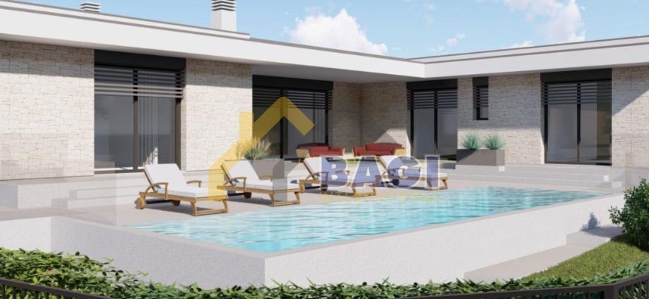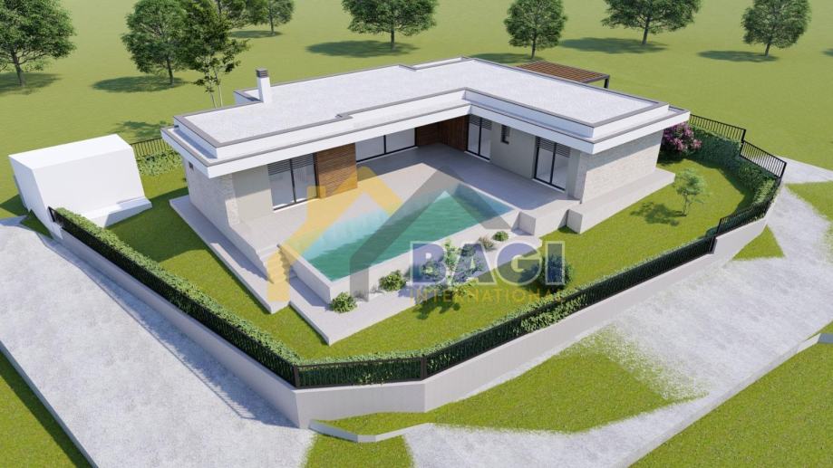 Za zemljište je izdana važeća građevinska dozvola koja vrijedi do lipnja 2027. godine, pri čemu je rok za prijavu početka gradnje najkasnije do 12. lipnja 2027. godine. Projekt predviđa izgradnju moderne prizemnice neto površine 145 m², koja se sastoji od tri spavaće sobe, tri kupaonice, dodatnog gostinjskog toaleta, ulaznog prostora te prostranog open space dnevnog boravka s kuhinjom i blagovaonicom. Iz dnevnog dijela predviđen je izlaz na terasu i uređenu okućnicu s bazenom, a planirana je i izgradnja pomoćnog objekta.