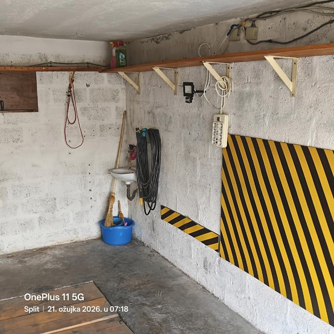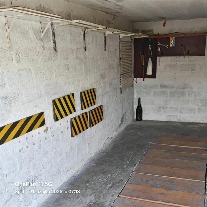 Prodajem garažu od 15 m² u Splitu. Garaža je zatvorena, s roletnom rolo vratima, i pruža dovoljno prostora za parkiranje osobnog automobila. Uz bočne zidove postavljene su police pogodne za odlaganje alata i raznih stvari, vlastito brojilo za struju te razvodna ploča sa osiguračima u garaži, voda i kanal u garaži
