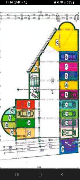 Podzemna garaža u zgradi na adresi Nazorova 68. Ulaz na daljinski. Ukupno 35 m2, od kojih je veći dio zatvoren u montažni pvc sa velikim kliznim vratima, i služi kao spremište. A ostatak je ostavljen za parkiranje jednog vozila. Mogućnost skidanja pvc i stvaranje prostora za 2 do 3 vozila. Na tlocrtu označena žuto AA.
