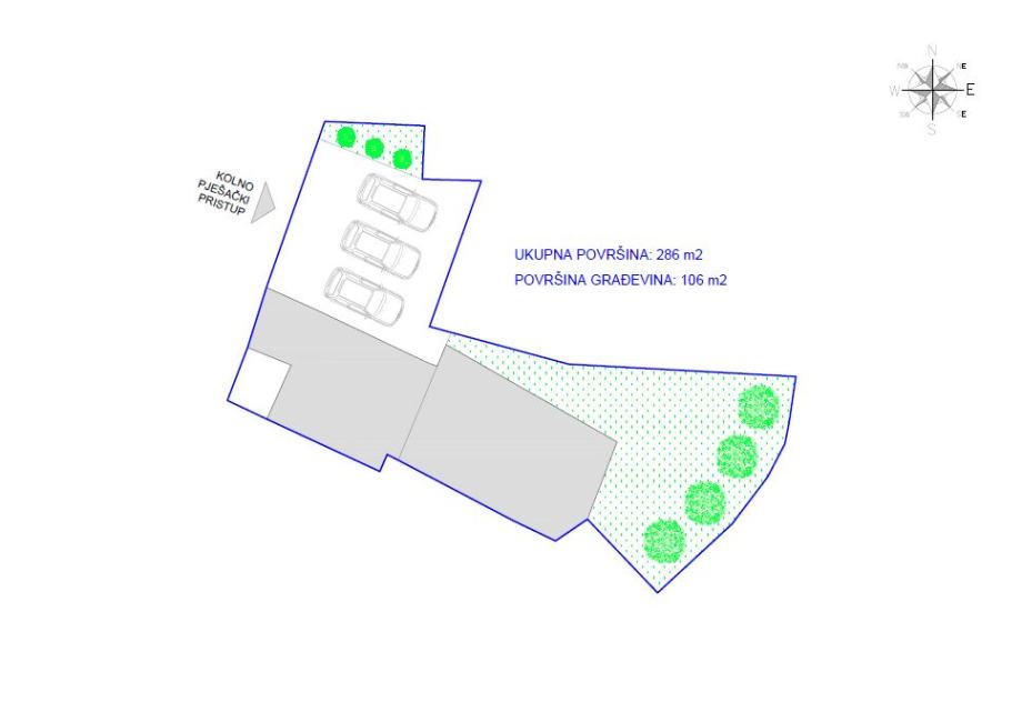 Tlocrtna površina objekata iznosi cca 106 m2, a nalaze se na građevinskoj parceli od 286 m2.