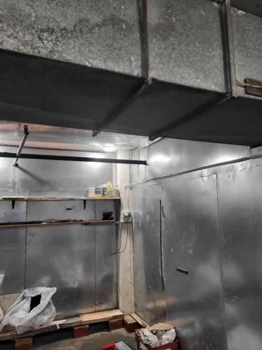 12m2. Na -1. može kao skladište, za bendove (provjereno, svirka ne smeta) i sl. ulaz moguć automobilima do visine 1.90m. Okolo ima parkinga. Struja (5 utičnica). Zona tramvaja.