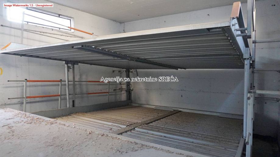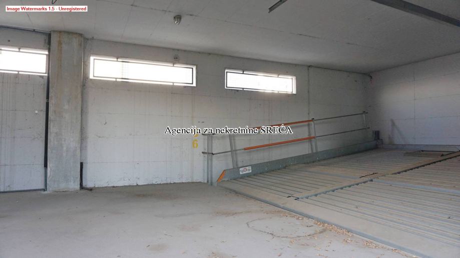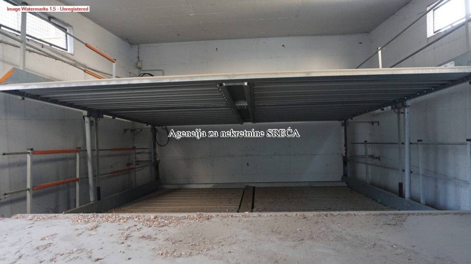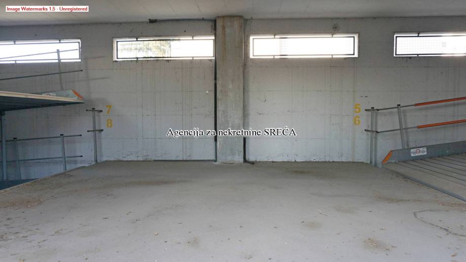 Prodaje se 8 garažnih mjesta u 2 etaže, s tim da je na jednom garažnom parkirnom mjestu mogućnost parkiranja 2 automobila u isto vrijeme u 2 etaže. Sve je to omogučeno po hidrauličnom principu Njemačke tvornice KLAUS multiparking. Uz ovih 8 mjesta, prodaju se i 2 zasebna mjesta u jednoj garaži u 2 etaže, tako da postoji mogućnost kupnje i te 2 u paketu ili pak svih 10 zajedno.