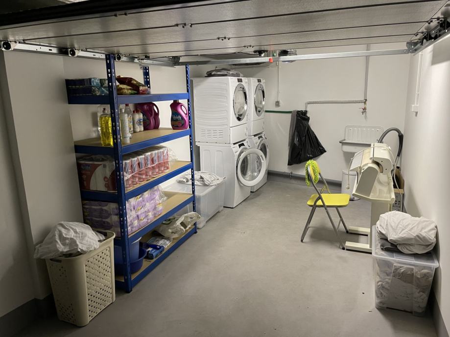 Opremljena je s dvije perilice i dvije sušilice rublja, valjkom za glačanje, umivaonikom, policom te kutijama za rublje.