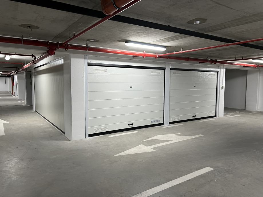 Garaža je suha, očišćena i odmah useljiva, opremljena sekcijskim vratima na elektromotor, s unutarnjom rasvjetom i električnom utičnicom.