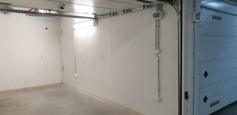 Garaža ima visoka (220 cm) i široka elektro podizna vrata s 4 ventilaciona otvora, upravljanje s daljinskim upravljačem i automatsko paljenje svijetla.
