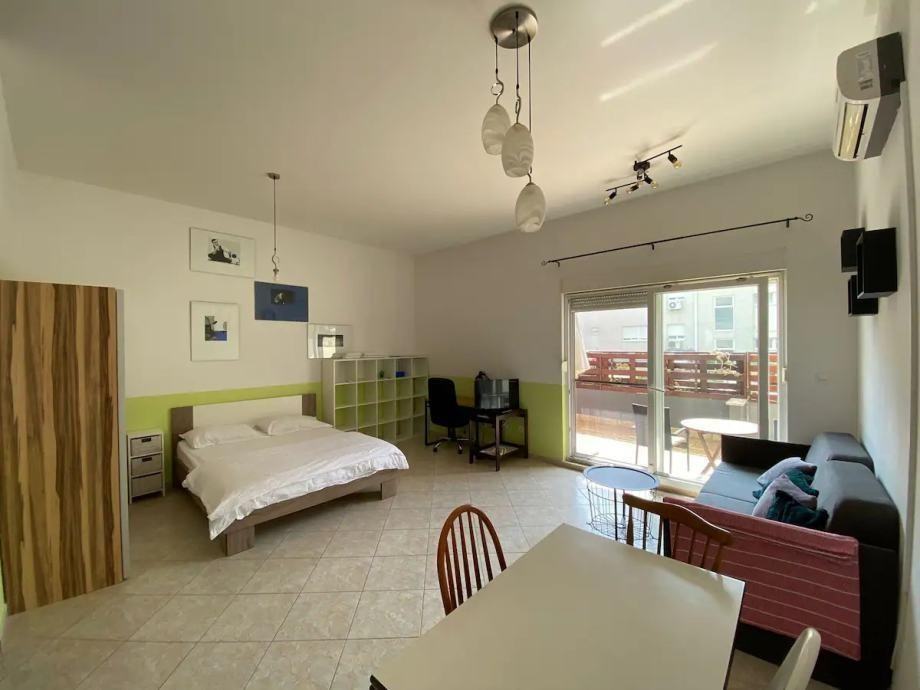 We mediate the rental of a studio apartment in Split, district Žnjan. It is located on the ground floor of a residential building. It consists of a room with a double bed and a sofa, a kitchen, a bathroom and a terrace. It is fully equipped.