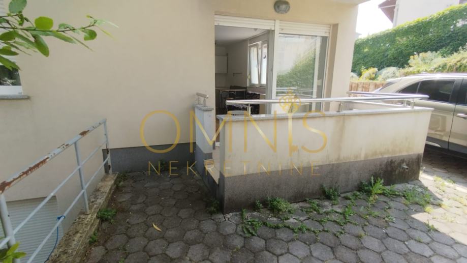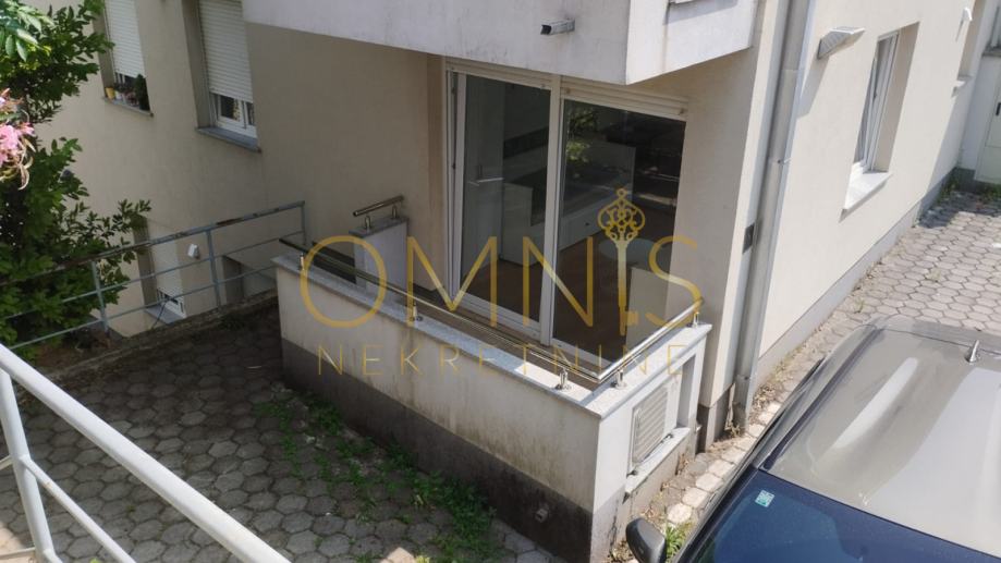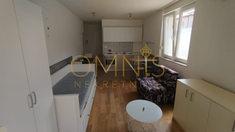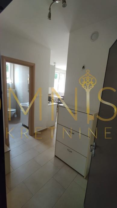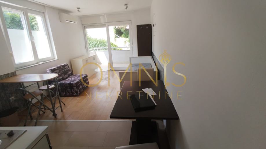 Na prodaju je potpuno opremljena garsonijera površine 30 m2 smještena u visokom prizemlju stambene zgrade izgrađene 2010. godine. Stan se sastoji od ulaza, wc-a, glavne prostorije i terase, a posebnost mu je mogućnost zasebnog ulaza preko terase, što ga čini pogodnim i za poslovne svrhe.