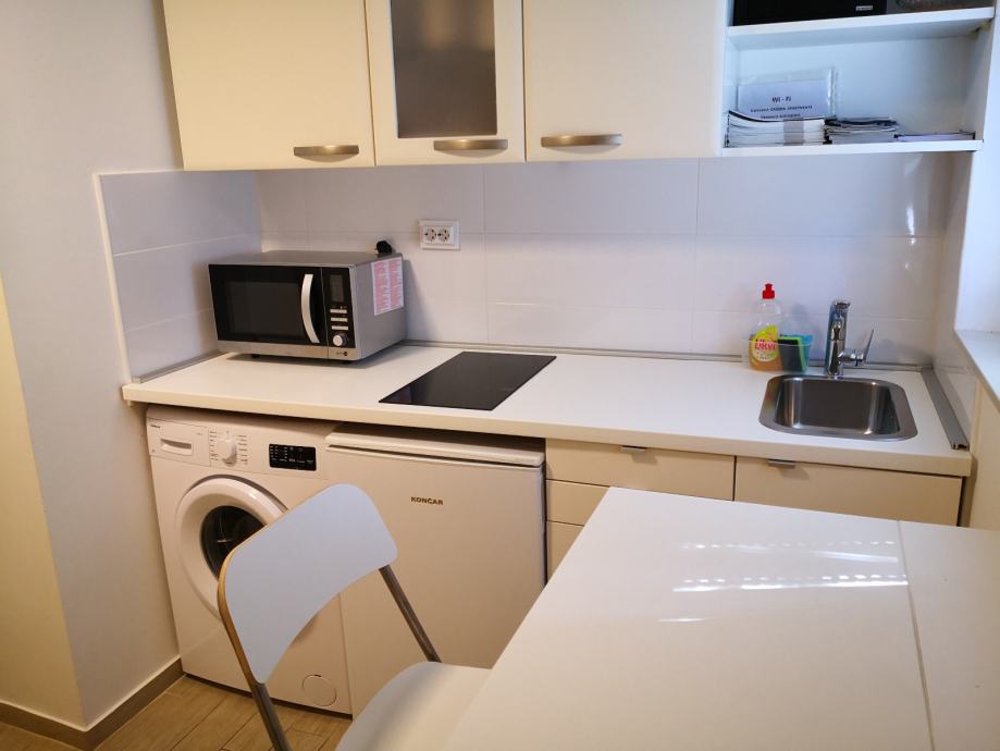 Iznajmljujemo garsonijeru 15m2 s terasom tijekom cijele godine. Zaseban ulaz, potpuna privatnost, kompletno namještena. Cijena 350 eura plus režije. Stan se nalazi 400 m od uređene plaže i 200 m od centra grada. Polog u iznosu jedne mjesečne najamnine. Minimalan period najma mjesec dana.