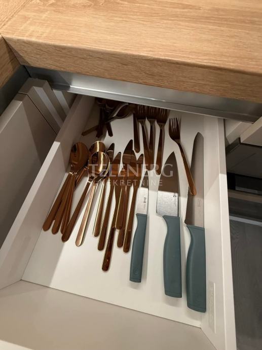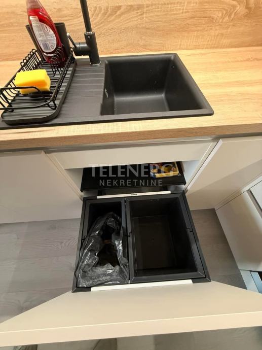 Stan opremljen svim osnovnim sadržajem za život (perilica rublja, usisavač, posuđe, ručnici Itd..) Električne rolete, videoportafon,podno grijanje, visoke barske stolice u dolasku, naručene..