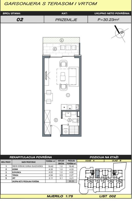 Garsonijera S2 (prizemlje) - 30,23m2 = 120.920,00€