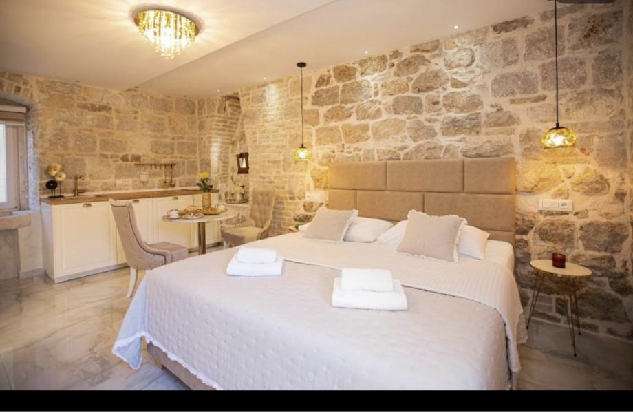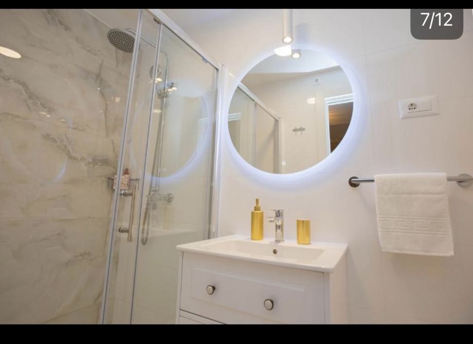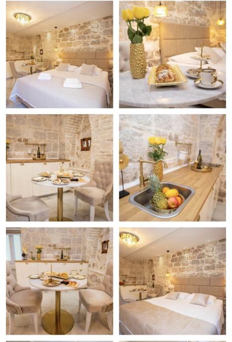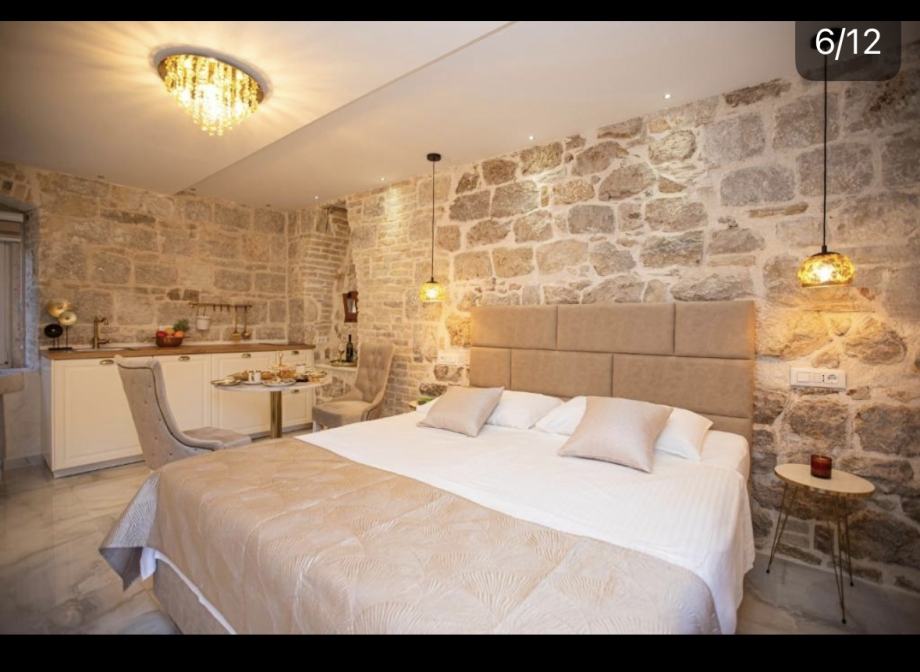 Garsonjera ima bracni krevet, kupatilo, kuhinju, stol, stolice, ormar, masinu za suđe i masinu za robu.