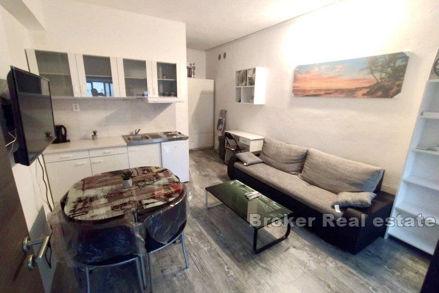 Stan se sastoji od odvojene kupaonice te kuhinje i dnevnog boravka sa spavaćim dijelom u jednoj prostoriji. Funkcionalan raspored pruža ugodan i praktičan prostor za život.
