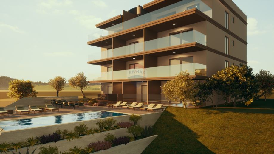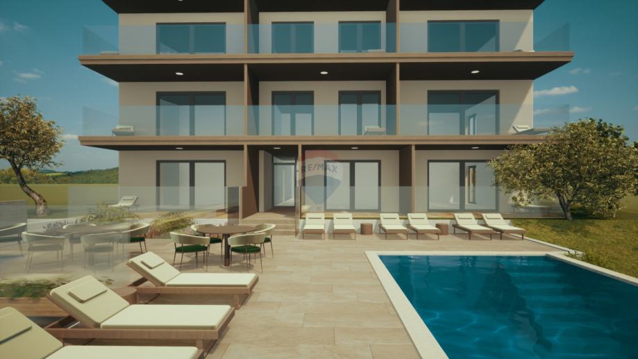 Okućnica će biti uređena u mediteranskom stilu s obiljem ukrasnog bilja, a okućnicom će dominirati bazen površine 36 m2 s prostranim kamenim sunčalištem i prostorom za sjedenje i druženje iz kojeg se pruža pogled na cijeli primoštenski arhipelag. U sklopu okućnice nalazi se parkirno mjesto koje pripada stanu.