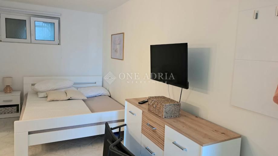 Prodaje se uređena i namještena garsonijera površine 33 m², smještena u prizemlju kuće s četiri apartmana u Dramlju. Nekretnina se nalazi na vrlo atraktivnoj lokaciji, samo 120 metara od mora, u mirnom okruženju zelenila, što pruža ugodan ambijent za boravak tijekom cijele godine.