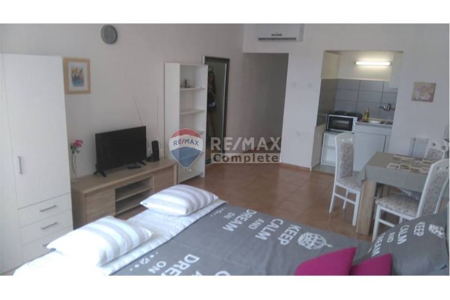 Stan na petom katu zgrade, površine 26,14 m2, koji se sastoji od sobe, kuhinje, kupaonice i predsoblja sa zajedničkim dijelovima i uređajima zgrade.