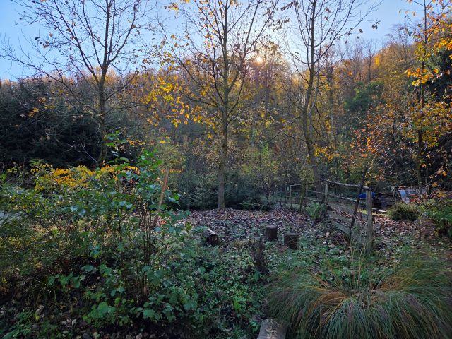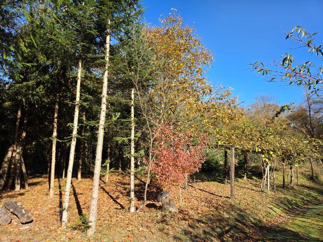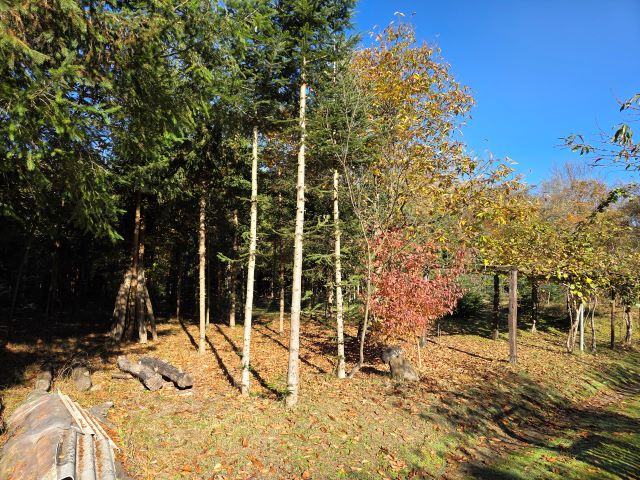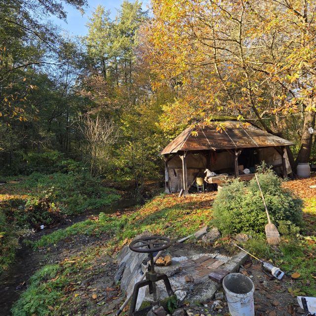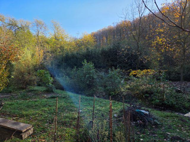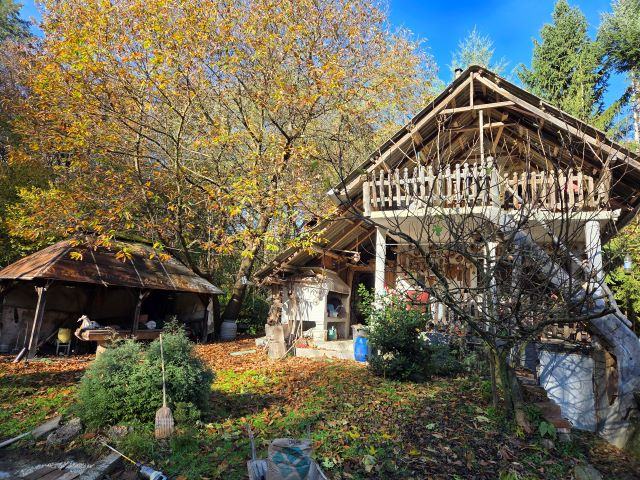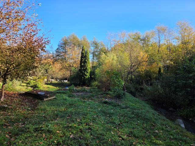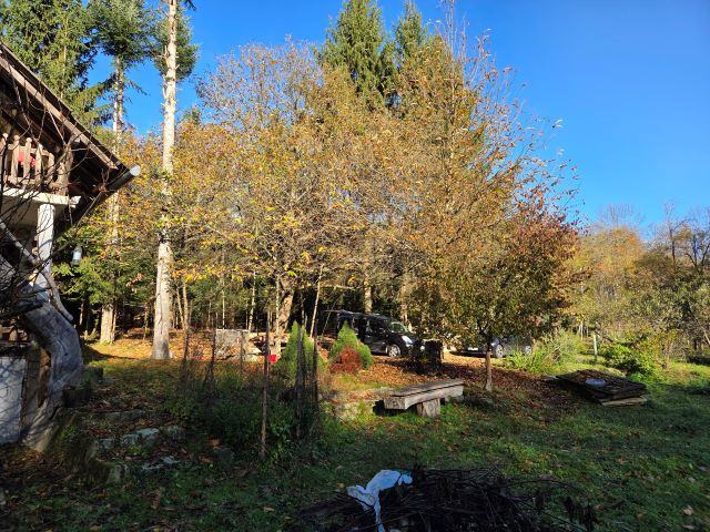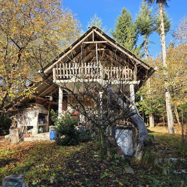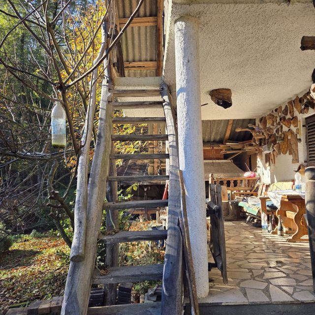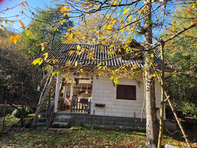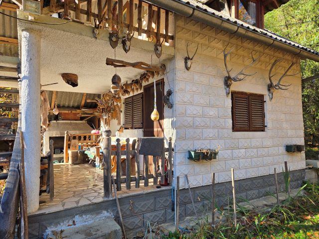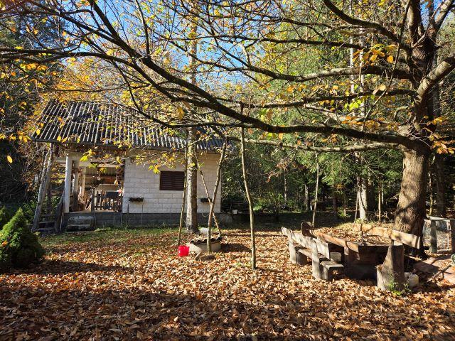 Vikendica je smještena u selu Gazije gdje je okružuje šuma i potok koji prolazi kroz parcelu.