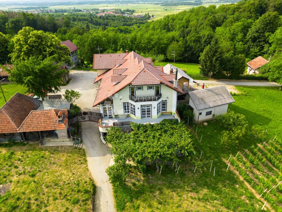 Na prostranoj parceli od preko 10.500 m², s pogledom koji bez srama gleda Kalničko gorje ravno u oči, smjestio se kompleks koji spaja poslovno i osobno, rustikalno i funkcionalno. Glavni objekt broji gotovo 950 m², a sve skupa diše kao malo selo u jednom.