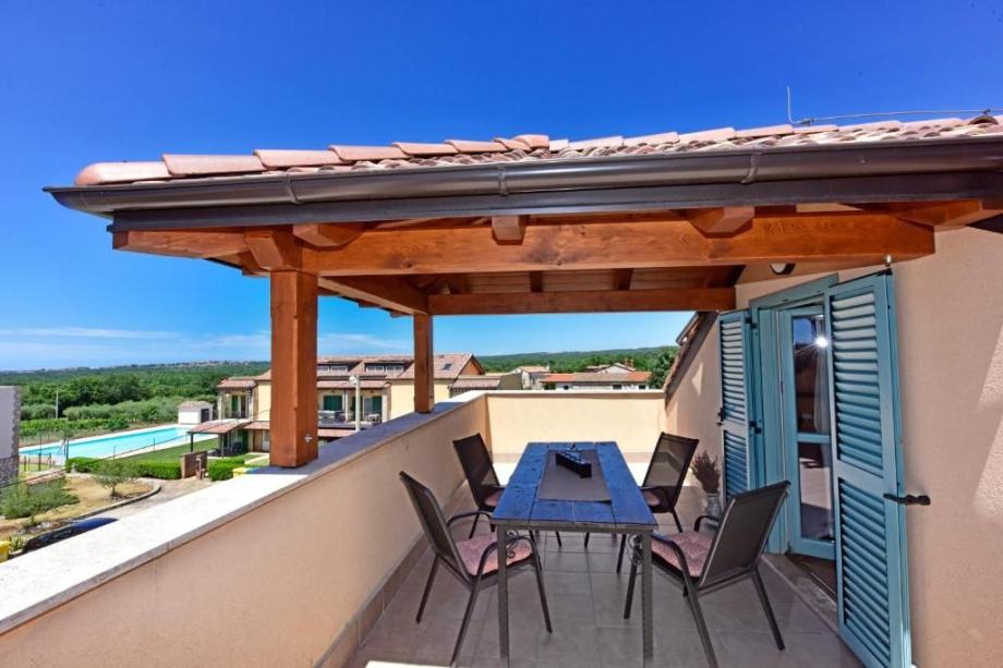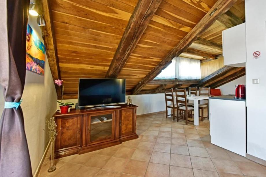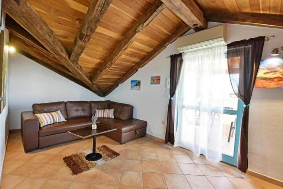 potpuno opremljene kuhinje s blagovaonom i dnevnog boravka, dvije spavaće sobe , kupaonice i prostrane terase sa predivnim pogledom na more. Stan ima na korištenje zajednički bazen i tenis igralište.