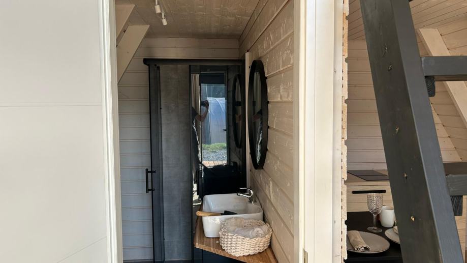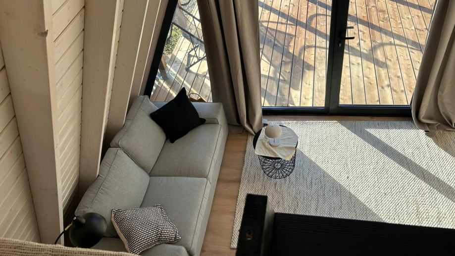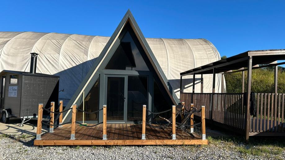 Ovaj prekrasan model koji će služiti kao glamping kuća možete pogledati kod nas u izložbenom salonu u Svetom Ivanu Zelini. Kuća se također može izvesti i po projektu investitora. Glamping kuća Delta sastoji se od prostorije za kuhinju i dnevni boravak sa kupaonicom te galerijom na katu kao prostor za spavaću sobu. Ova glamping kuća od 35 m2 svakoga će ostaviti bez daha, budite nas slobodni doći posjetiti uz prethodnu najavu te pogledat ovaj prekrasan model.