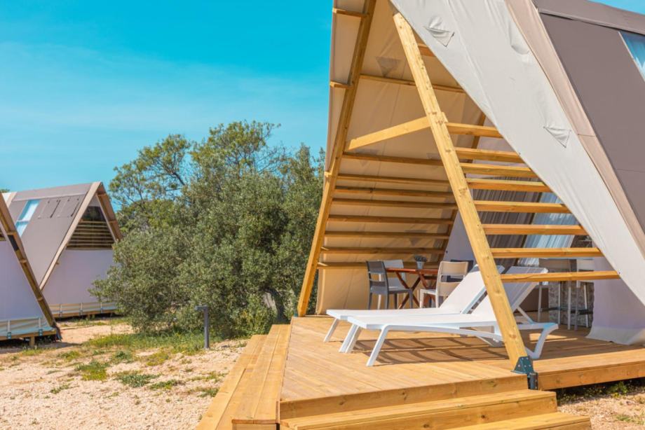 Visokokvalitetna oprema – šatori su opremljeni vrhunskim namještajem, uključujući setove za sjedenje, stol sa stolicama i ležaljke.