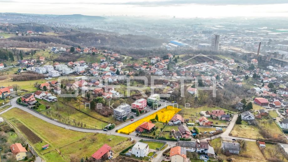 Atraktivno građevinsko zemljište ukupne površine 2215 m2, sastoji se od 2 čestice pravilnog pravokutnog oblika, s blagim nagibom i prekrasnim pogledom na zapadni dio grada, orijentacije S-J. Obje čestice prodaju se zajedno, imaju dvostrani pristup te kao takve pružaju raznovrsne mogućnosti gradnje. Zemljište spada u područje mješovite pretežito stambene namjene i uz njega su svi potrebni priključci. Okruženo je obiteljskim kućama i višestambenim zgradama. Detaljna lokacijska informacija (dostupna na uvid) pruža različite mogućnosti gradnje stambene i višestambene građevine uz koef. izgradivosti 0,3 te koef. iskoristivosti 0,6. Moguće 3 nadzemne etaže pri čemu se treća etaža oblikuje kao potkrovlje ili uvućeni kat.