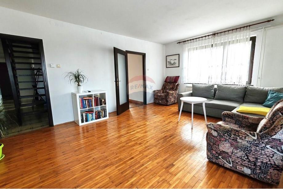 Kuća izgrađena 1990. godine sastoji se od tri etaže: podruma, prizemlja i kata. Prizemlje i kat namijenjeni su za stambeni prostor dok se podrum koristi kao garaža i prostor za odlaganje alata. Ova prostrana kuća s ukupnom stambenom površinom od 194 m2 nudi dovoljno prostora za svaki vaš korak.