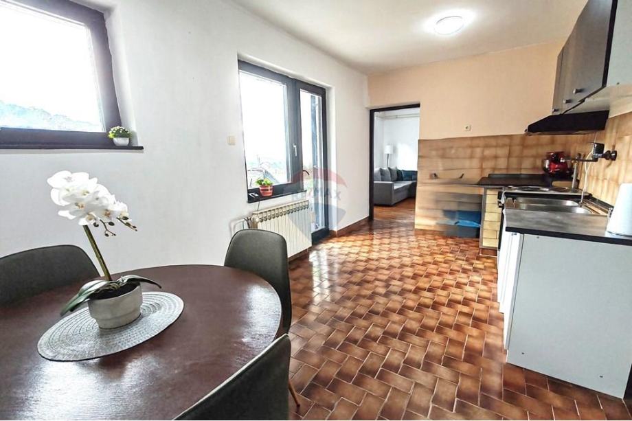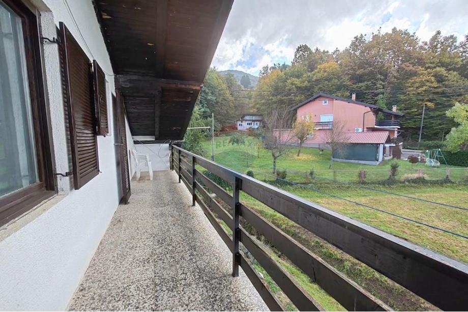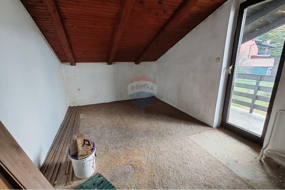 U prizemlju kuće iz hodnika se ulazi u prostrani svjetlom obasjani klimatizirani dnevni boravak, zatim u kuhinju sa blagavaonicom iz koje se izlazi na veliku terasu, zatim tu je jedna spavaća soba i kupaonica sa tuš kabinom. Drvenim stepenicama penje se na kat na kojem se nalazi kupaonica sa kadom te čak tri spavaće sobe sa izlazima na balkon iz svake sobe. Kat se sada ne koristi i moguće ga je urediti po svojim željama i potrebama.