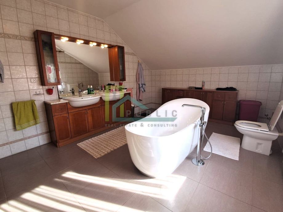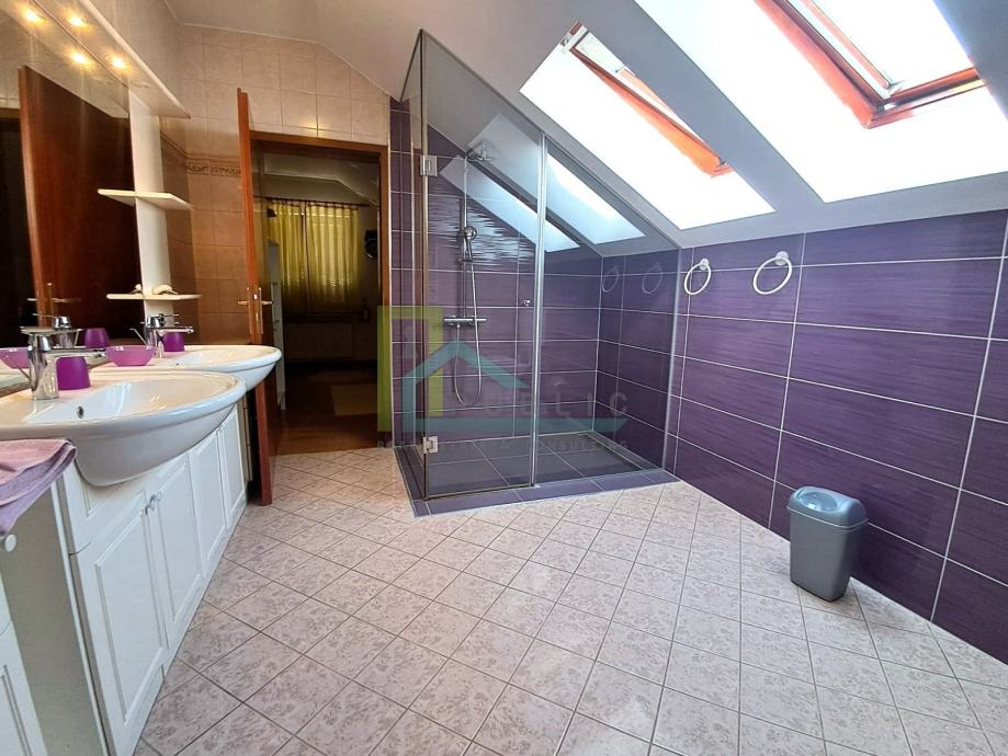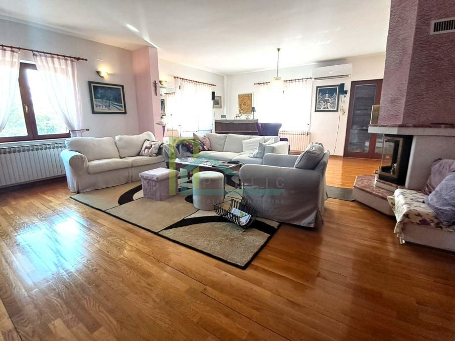 Odličan raspored prostorija i izuzetno dobra orijentacija, doprinose svjetlini svih soba, ponajviše dnevnog boravka. Prodaje se polu namještena, potpuno opremljena kuhinja i dosta ugradbenog namještaja. Prekrasno uređena okućnica, grijani prilazni put do garaže i parkinga. Klimatizirano, podno grijanje u kupaonicama, kamin...