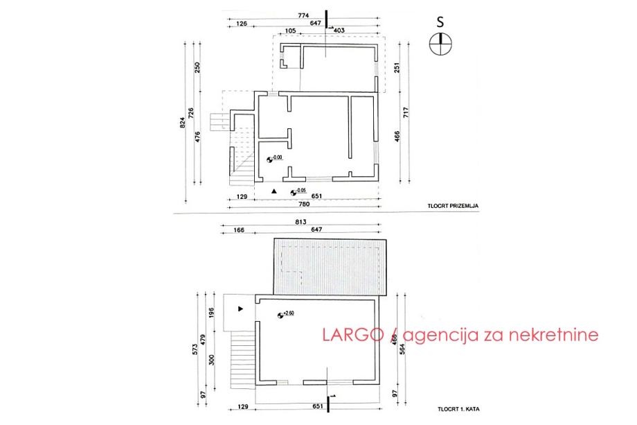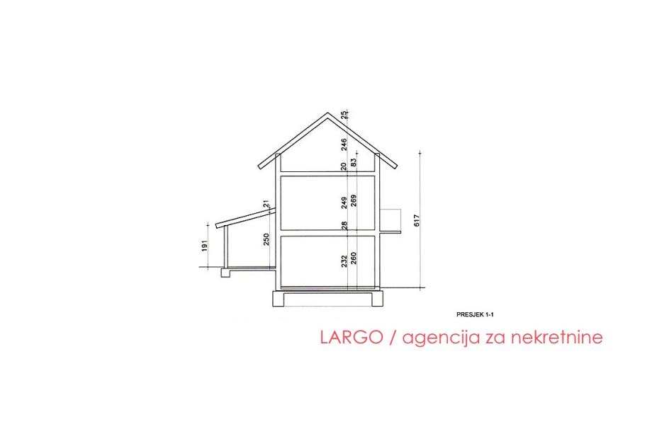 Prikaz tlocrta etaža, katastra i pročelja kuće te obračun kvadrature možete vidjeti u prilogu.