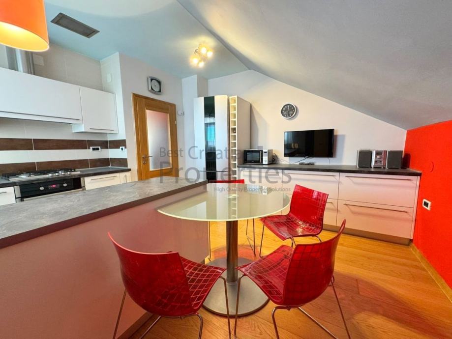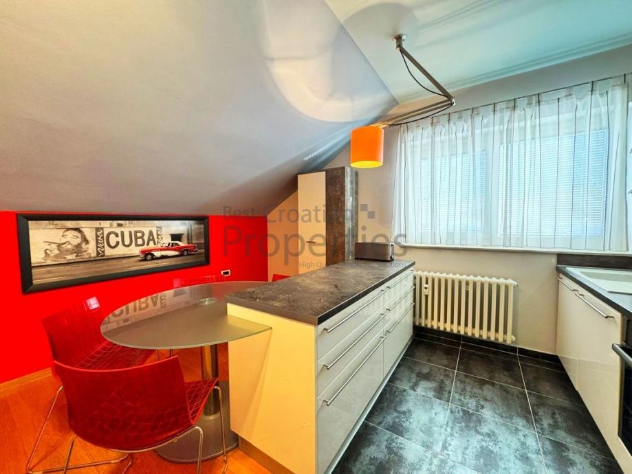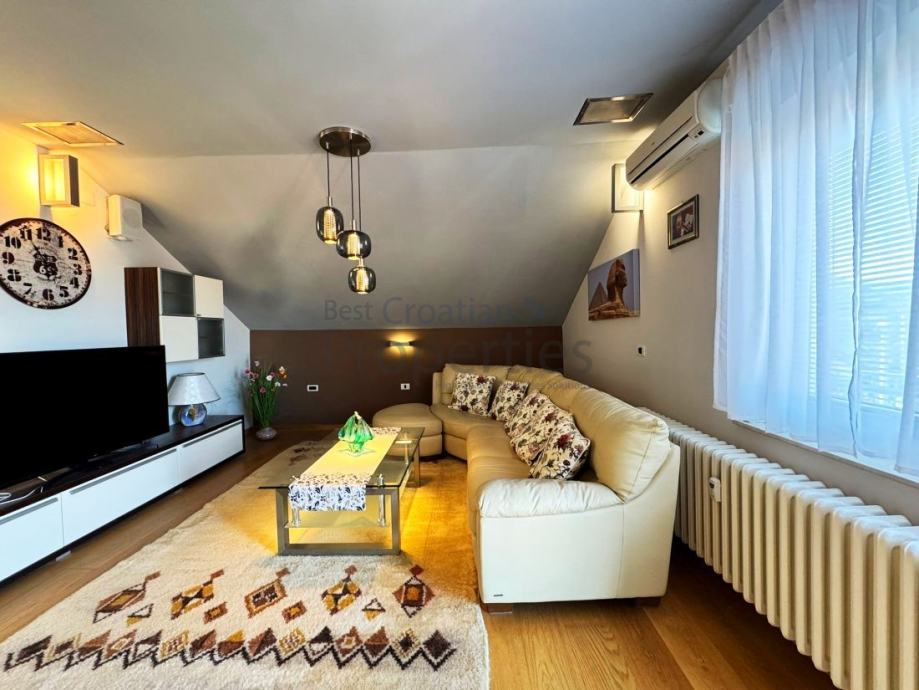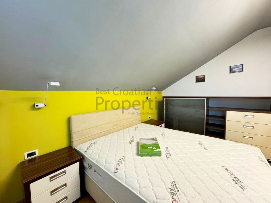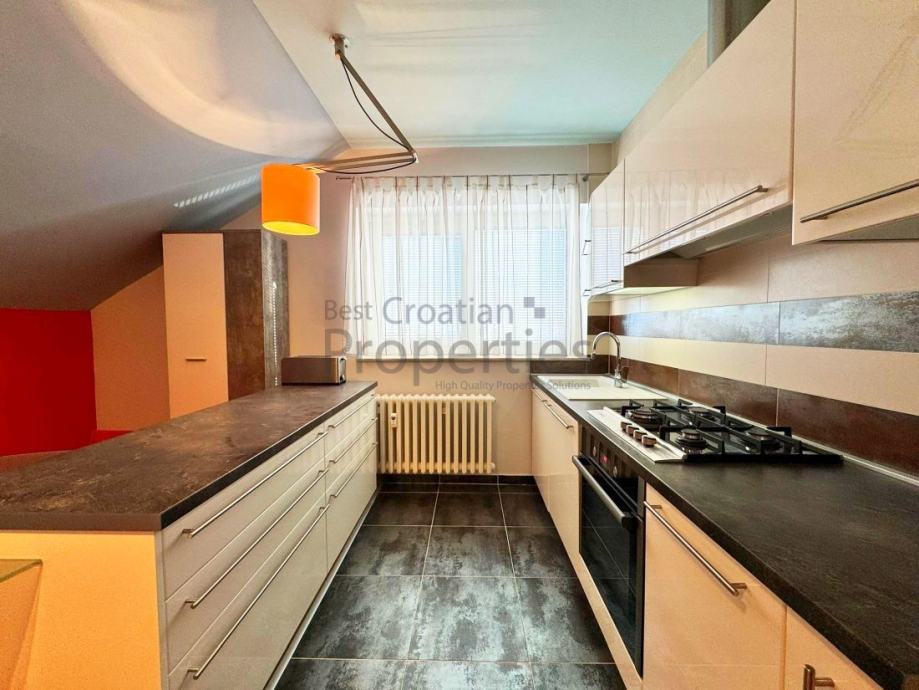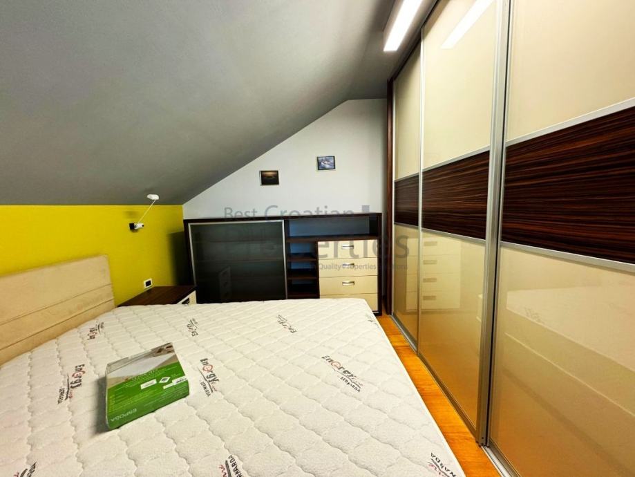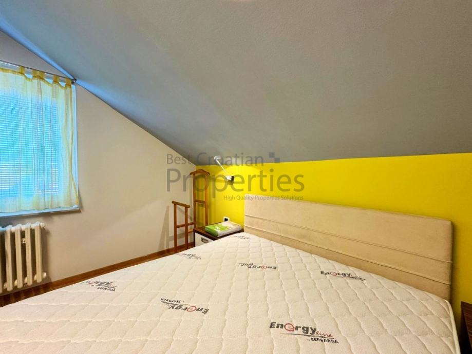 Iznajmljuje se simpatičan, moderno uređen dvosobni stan, veličine 63m2 u potkrovlju kuće, u mirnoj ulici Topolovečki priključak.