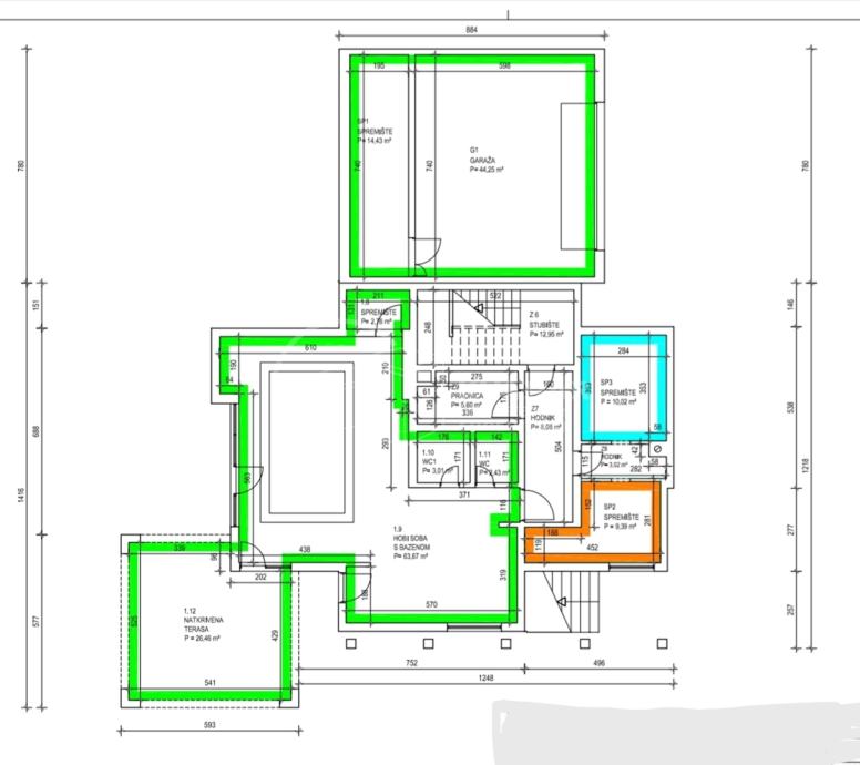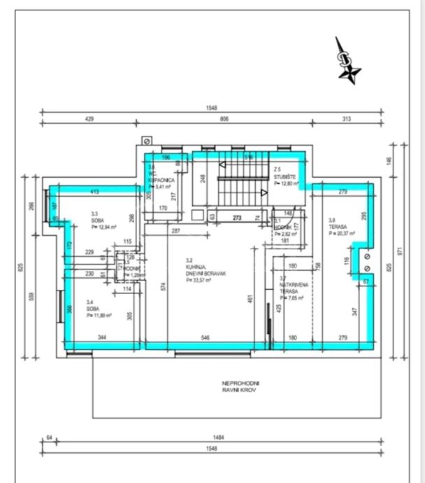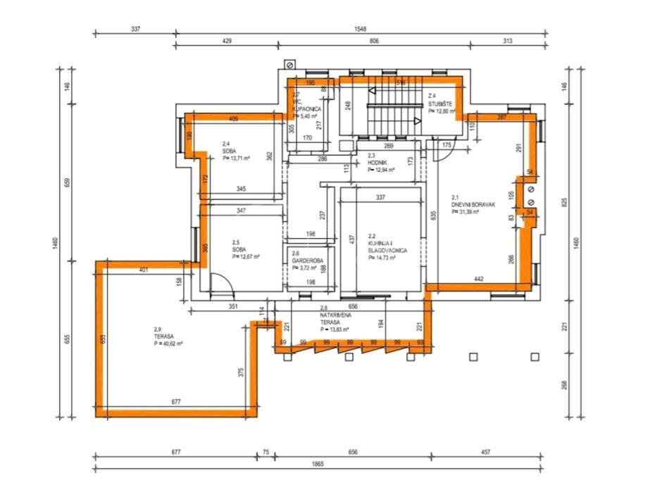 - terasa 40,62m2 + natkrivena terasa 14m2